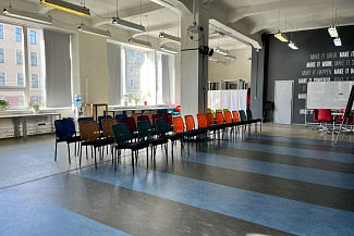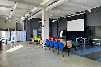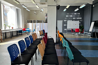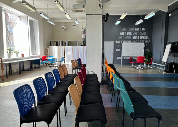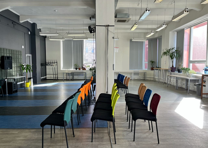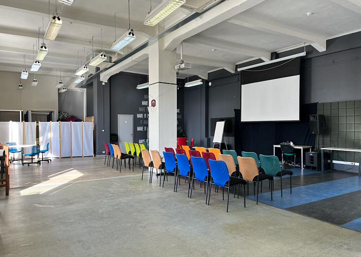 Трансформируемый конференц-зал вместимостью до 130 человек. Оборудован всем необходимым для проведения эффективных переговоров и мероприятий. Есть возможность организовать онлайн трансляцию или подключение по видеосвязи. Под ваши требования мы организуем необходимую рассадку и предоставим все необходимое звуковое оборудование.