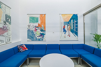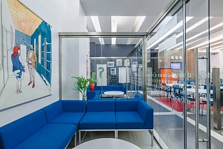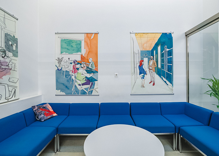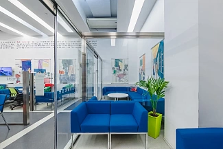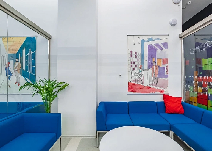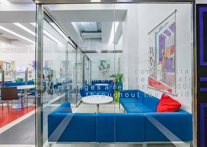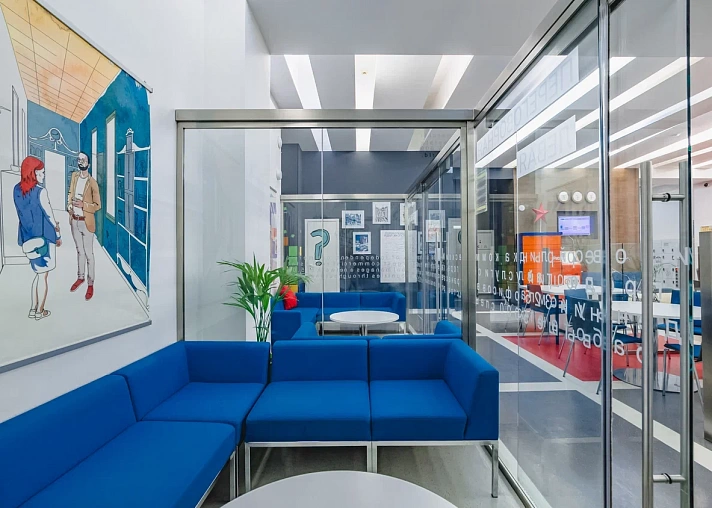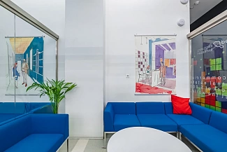 Небольшая стеклянная переговорная комната рассчитана на 4-6 человек и оборудована всем необходимым для проведения эффективных переговоров: стол, удобные стильные диваны, канцелярия, доступ к сети интернет, пользование кофе-поинтами, и самое главное - рабочая обстановка!